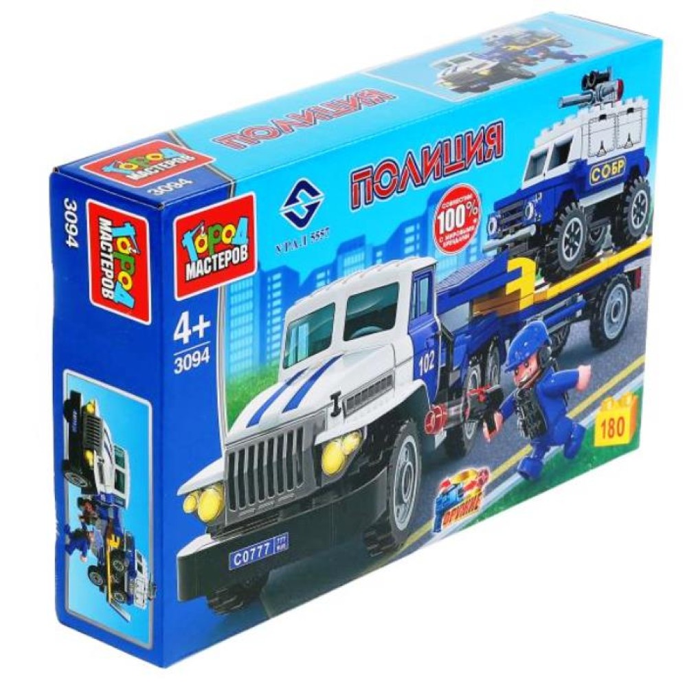 Город мастеров. Конструктор арт.3094-R "Полицейский урал перевозчик с джипом" 180 дет.