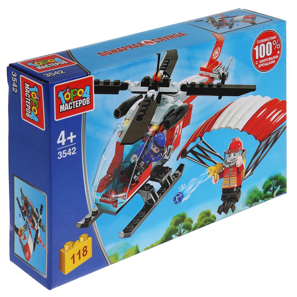 Город мастеров. Конструктор арт.3542-R "Пожарный вертолет с парашютистом" 118 дет.