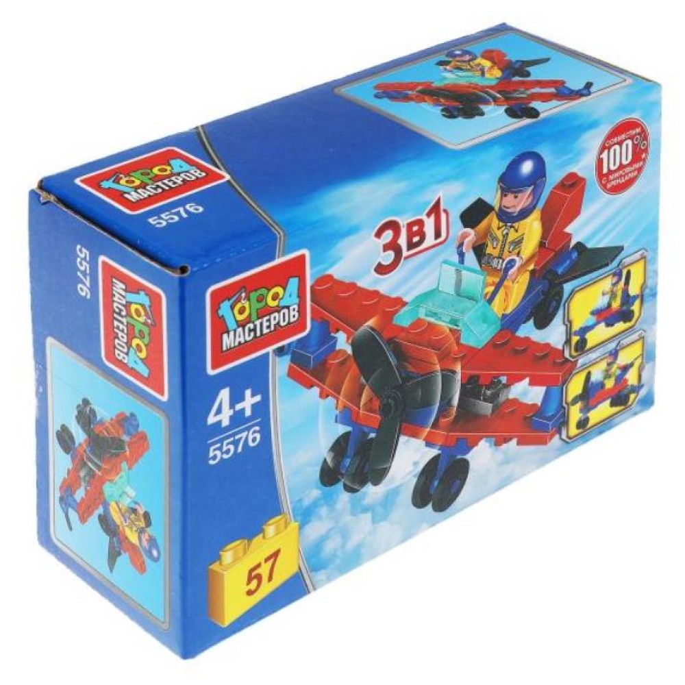 Город мастеров. Конструктор арт.5576-R "Самолет" 3в1 57 дет.