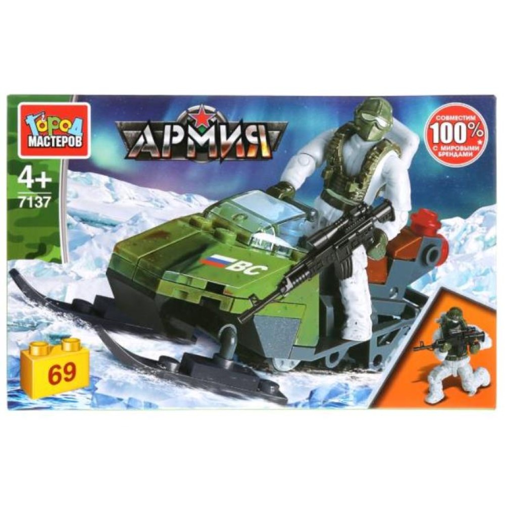 Город мастеров. Конструктор арт.7137-R "Армия: солдат на снегоходе" 69 дет.