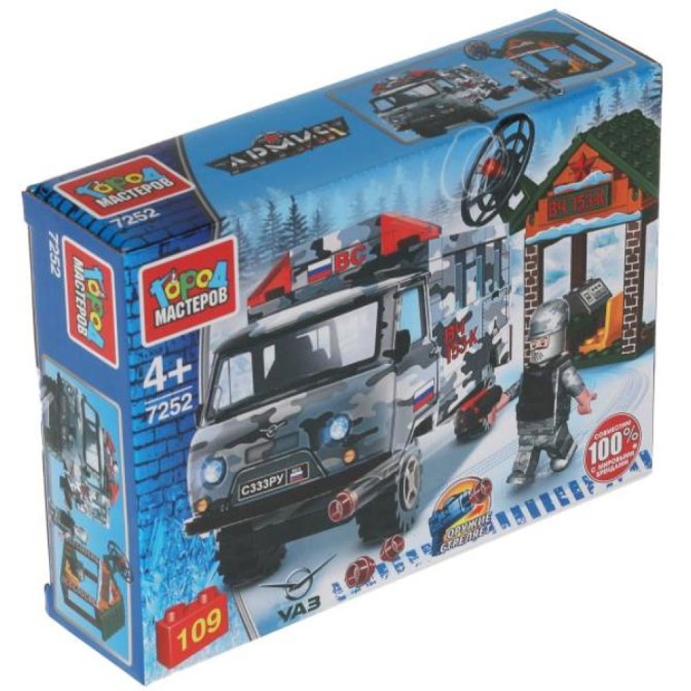 Город мастеров. Конструктор арт.7252-R "UAZ-452" на военной базе, 109 дет.