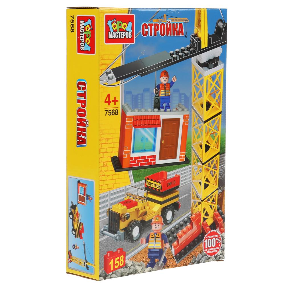 Город мастеров. Конструктор арт.7568-R "Стройка с краном" с фигурками, 158дет.