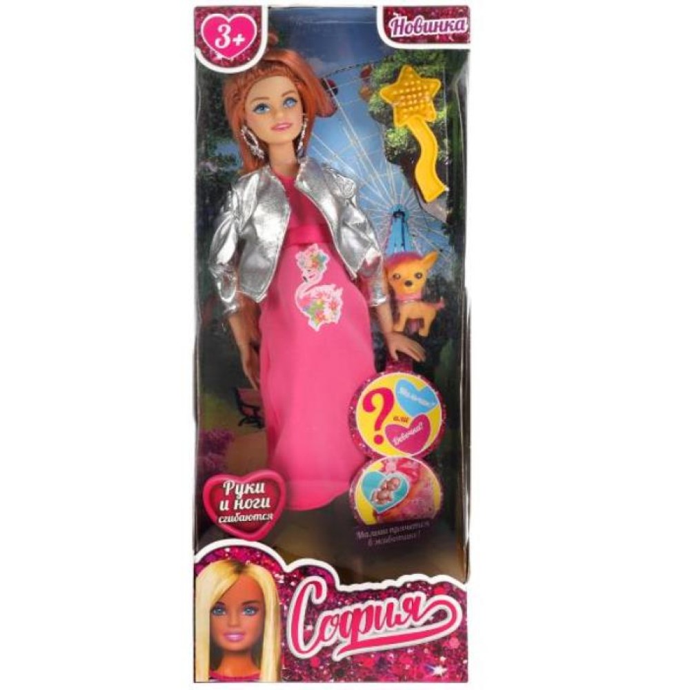 Карапуз. Кукла "София" 29см беременная, руки и ноги сгиб, в ком.собачка,расчес арт.66001B1-SET1-S-BB