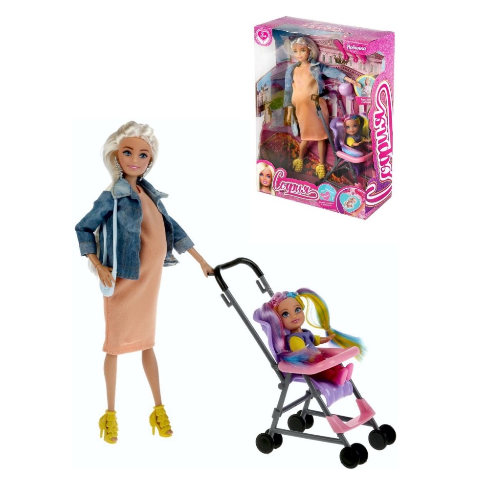 Карапуз. Кукла "София" 29см беременная, с дочкой, с акс руки и ноги сгиб, арт.66507-21-S-BB