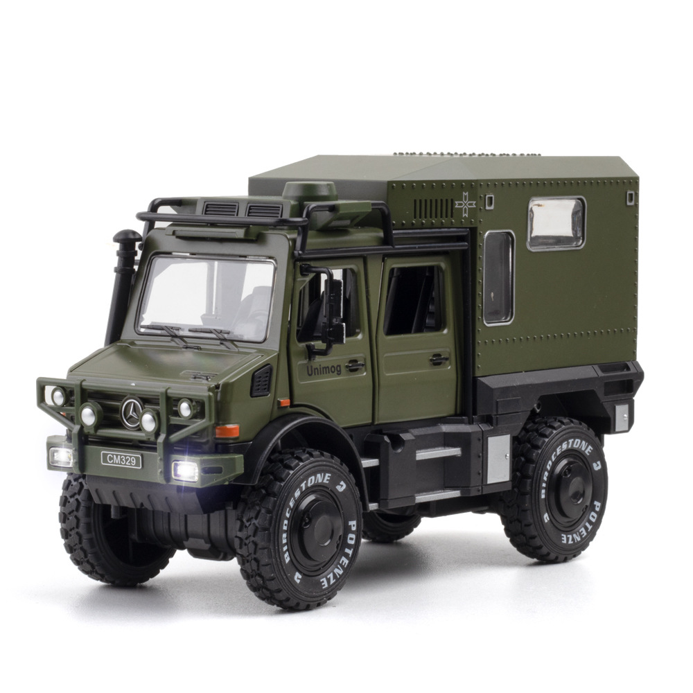Модель "Mercedes Unimog" 1:28 пластик. инерц. свет звук открыв. двери арт.C329/71380 цвет в асс..