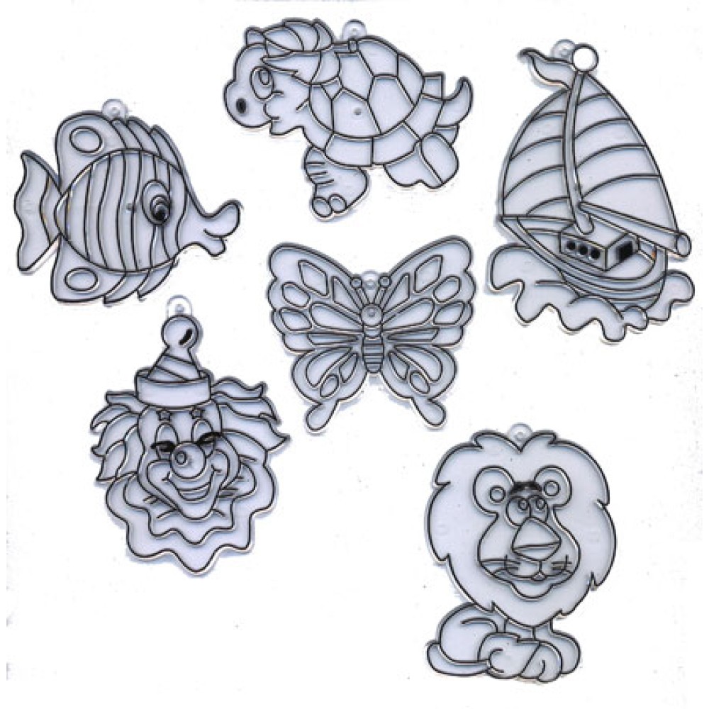 AMOS.23860 Витражи-мини "Рыбка,бабочка,лев,клоун,черепаха,кораблик" 6 шт.