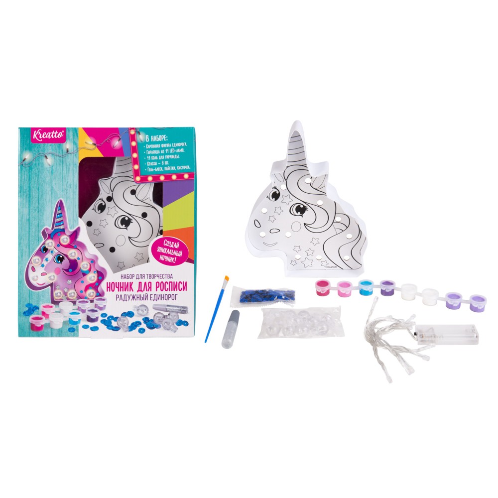 Kreatto. Ночник для росписи "Радужный единорог" арт.36993 /12