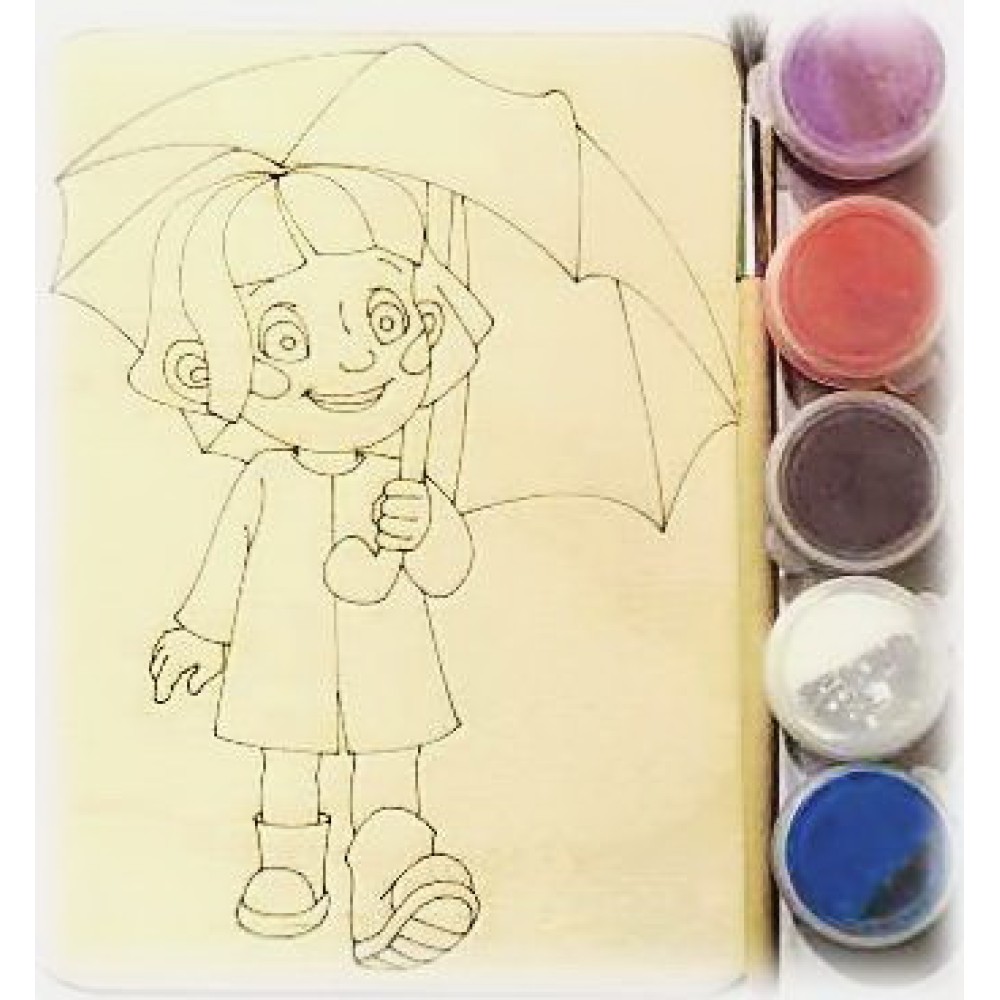 Дощечка под роспись "Девочка с зонтом" с красками и кисточкой арт.7814 (11*14 см.)