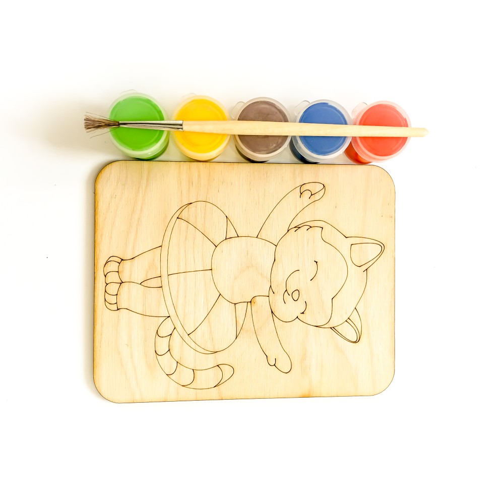 Дощечка под роспись "Котенок балерина" с красками и кисточкой арт.7809 (11*14 см.)