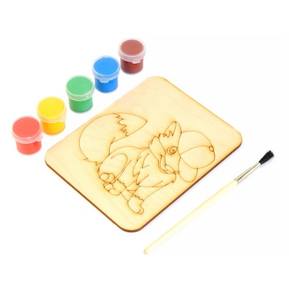 Дощечка под роспись "Лисенок в кепке" с красками и кисточкой арт.7836 (11*14 см.)