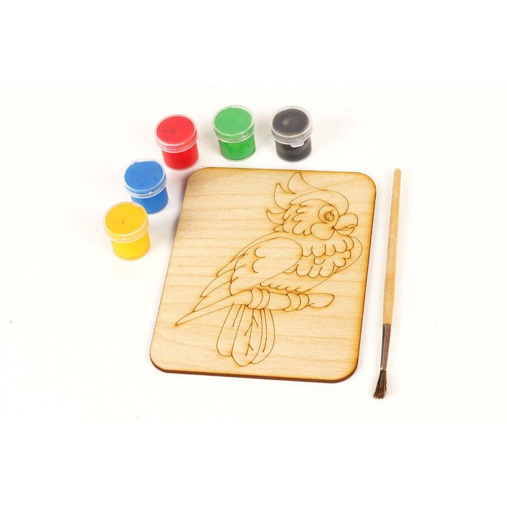 Дощечка под роспись "Попугай" с красками и кисточкой арт.7804 (11*14 см.)