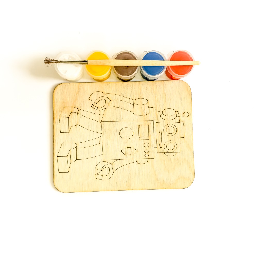 Дощечка под роспись "Робот" с красками и кисточкой арт.7813 (11*14 см.)