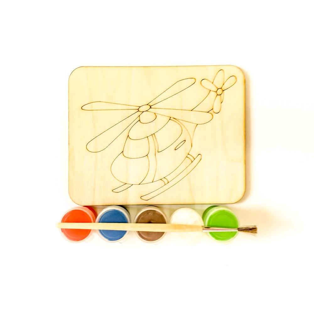 Дощечка под роспись "Вертолет" с красками и кисточкой арт.7805 (11*14 см.)
