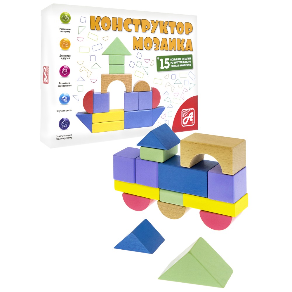 RDI-D080a "Конструктор-мозаика". 15 больших дет. из нат. дерева. /48