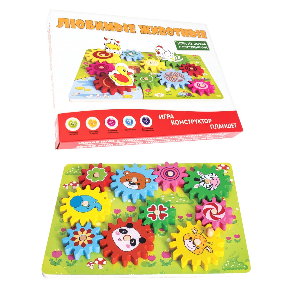 RDI-D082a Бизиборд "Любимые животные" Игра из дерева с шестеренками /48