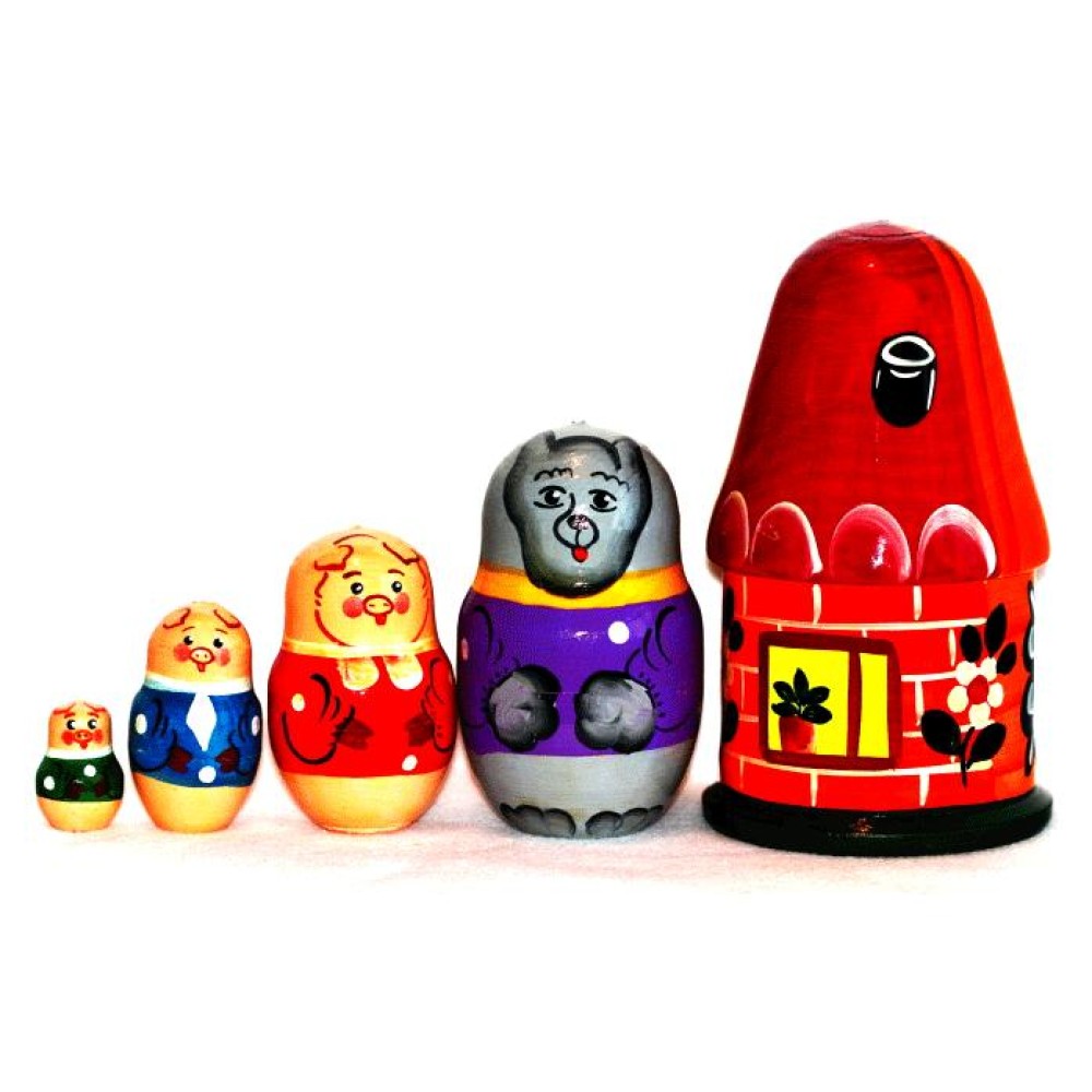 Матрешка "Три поросенка" (5 в 1: дом, волк, 3 поросенка) арт.Р-45/932 (РНИ) /24