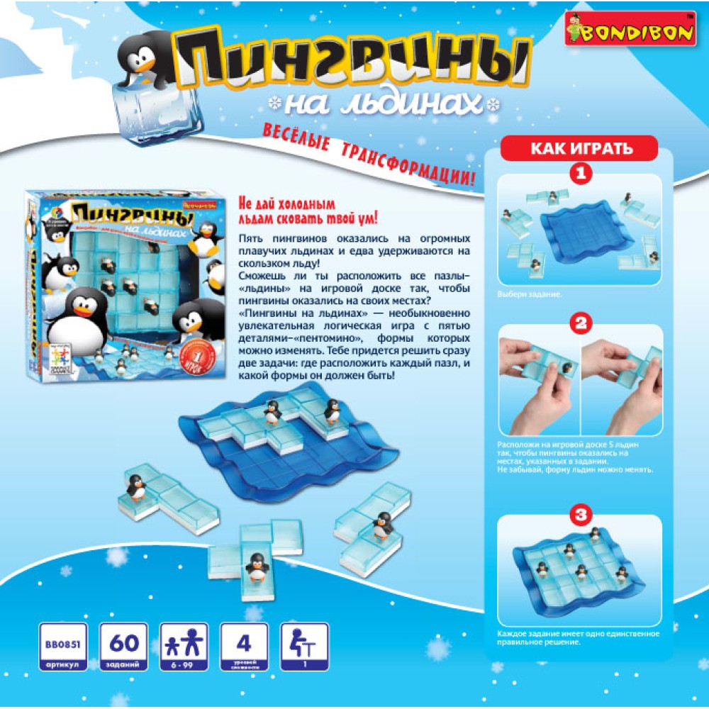 BONDIBON ВВ0851 Логич. игра "Пингвины на льдинах" арт.SG 155 RU /12