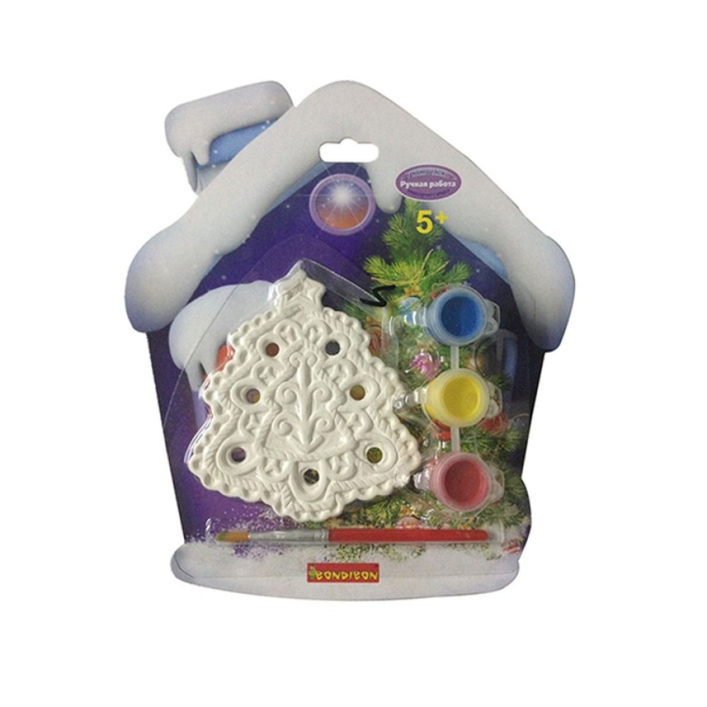 BONDIBON ВВ1656 Набор для творчества "Ёлочные украшения" Елочка на картоне домик /8