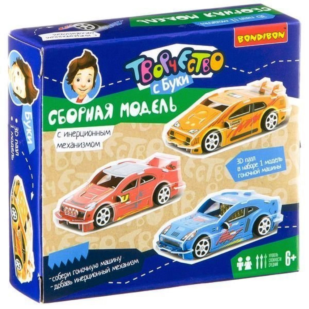 BONDIBON ВВ2206 Сборная 3D модель "Гоночная машина красная" с инерц механ. арт. 2613